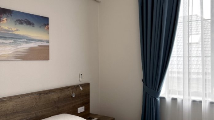 Однокомнатный номер с двуспальной кроватью, оснащенный всей необходимой мебелью. Кондиционер, телевизор, Wi-fi, мини-холодильник, сейф, письменный стол, фен, электрический чайник/чайный набор, комод, средства гигиены, мягкие полотенца/халаты по запросу, будильник.