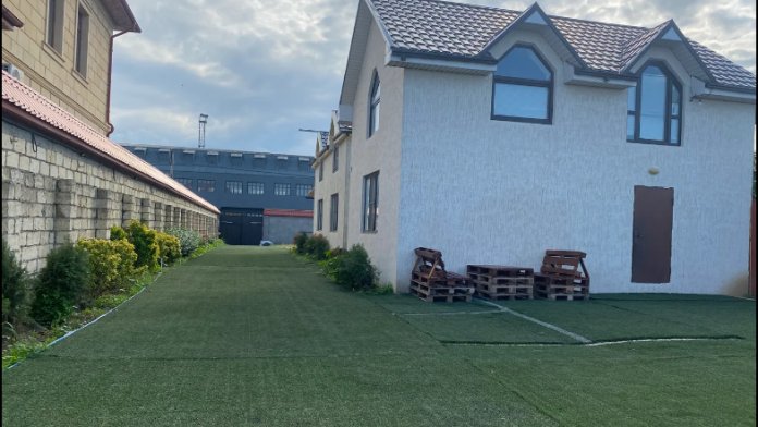 На территории располагаются 3 двухэтажных комфортабельных коттеджа. Участок огорожен. На первом этаже находится: кухня со всем необходимым, гостиная, включающая раскладной диван и два кресла, стол со стульями, телевизор, душевая с санузлом. На втором этаже просторная спальная комната с одной двухспальной кроватью, одной односпальной кроватью и комодом.