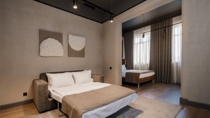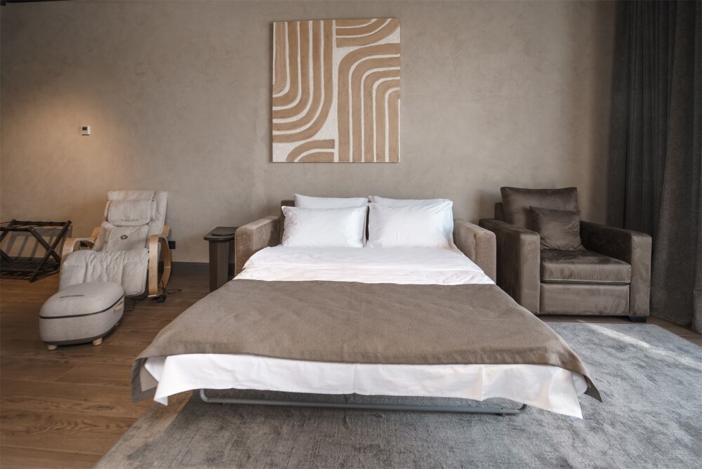 • Двуспальная кровать King-Size 180x200 см, диван 135х180 см.