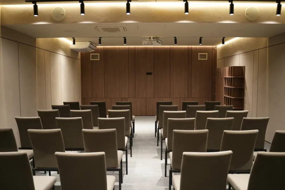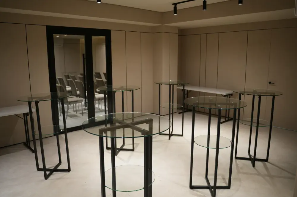 Конференц-зал, площадью 47 м² и вместимостью до 60 человек, имеет свой отдельный от отеля вход. К залу прилегает просторное фойе для проведения кофейных перерывов, коктейлей или организации небольших выставок. Зал оснащен современным аудио-проекционным оборудованием, моторизованным экраном и не имеет естественного освещения. Мы предлагаем различные варианты кофе-брейков, а также сытные курсовые обеды. Идеальное место для проведения как деловых, так и камерных банкетных мероприятий.