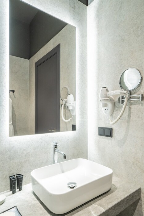 • Фен и набор косметических принадлежностей (шампунь, гель для душа, мыло, также по запросу предоставляются зубной, бритвенный, косметический наборы).