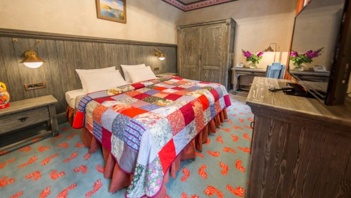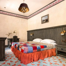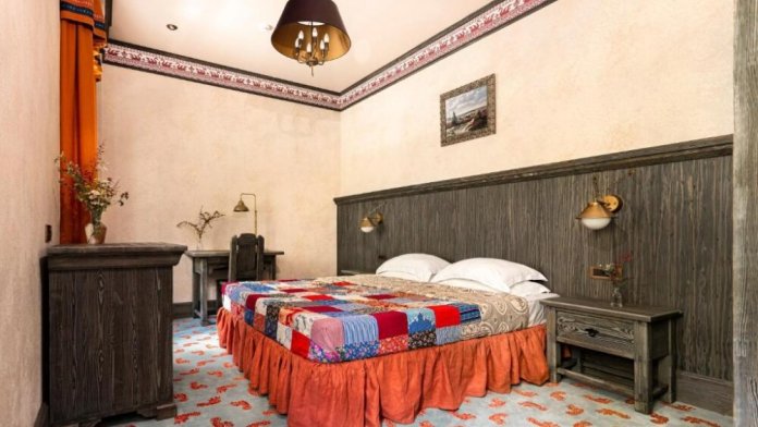 Переступая порог добротного сруба, словно попадаешь в палаты Ивана Грозного. Тяжелая мебель из массива, роспись русской вязью под потолками, авторские светильники из латуни и золотые рыбки, которые плещутся на ковре под ногами. Бонус – вид на горную реку Мзымта из окон горницы. И это все Бутик-отель «Кижи».