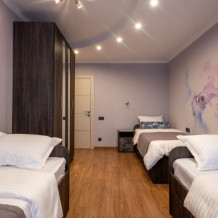 - В 1 спальне - 3 кровати (спальное место 160*200), у каждой кровати прикроватная тумбочка;