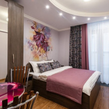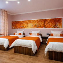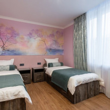- 4 спальня супер-комфорт - одна 2-спальная кровать, шкаф, столик со стульями, 2 прикроватные тумбочки, также для приятного отдыха гостей в этом номере предусмотрен балкон, который дает возможность гостям номера, сидя в кресле листать утреннюю газету, пить кофе и любоваться видами города (на балконе имеется журнальный стол и 2 кресла).