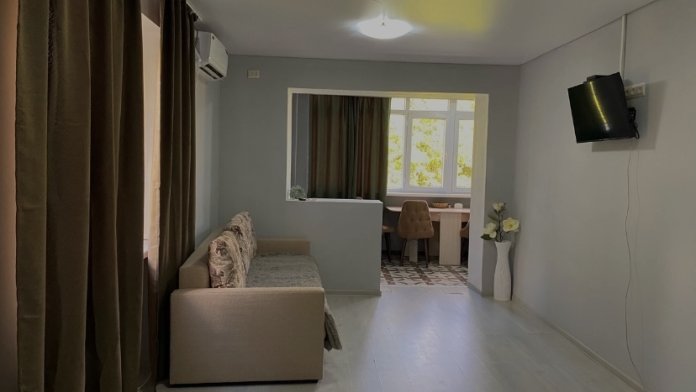 Трехкомнатная квартира в живописном районе г. Сухум - район Синоп, в 150 метрах от песчаного пляжа, в том числе и таких популярных пляжей Сухума и Республики в целом как Мокко, Marnero, Sunny.