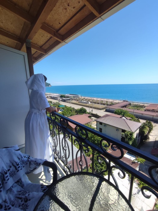 Гостевой Дом расположен в живописном районе г. Пицунда на берегу галечно-песчаного пляжа в местечке «Рыбзавод». Место знаменита своим расположением между двух мысов защищённое от волн.