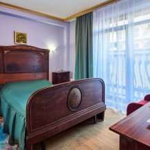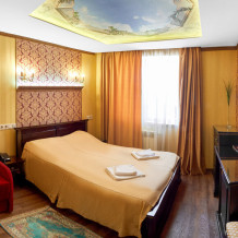 Корпус «Поручик Ржевский» Номер с 2 односпальными кроватями, размером 80Х200. В номере санузел с душевой кабиной. Номер оборудован телевизором, холодильником, чайником, посудой для чая. Мини-балкон При заселении в отель за номер вносится возвратный страховой депозит в размере 2000 рублей и берется курортный сбор -50 рублей с взрослого человека.