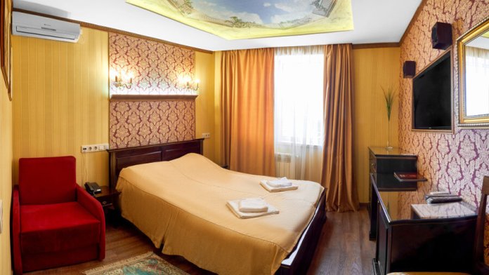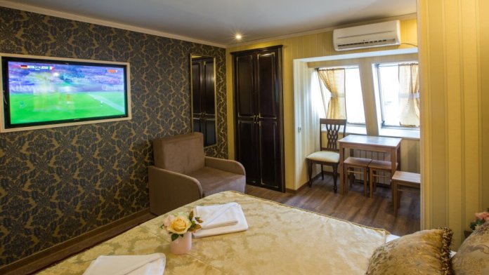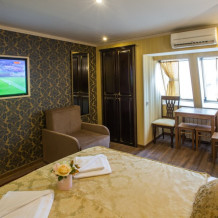 Номер находится на 4 этаже . Номер с кроватью 80x200, кондиционером, холодильником, телевизором, санузлом с душевой кабиной. При заселении в отель за номер вносится возвратный страховой депозит в размере 2000 рублей и берется курортный сбор - 50 рублей с взрослого человека.