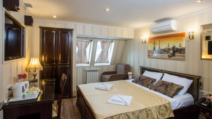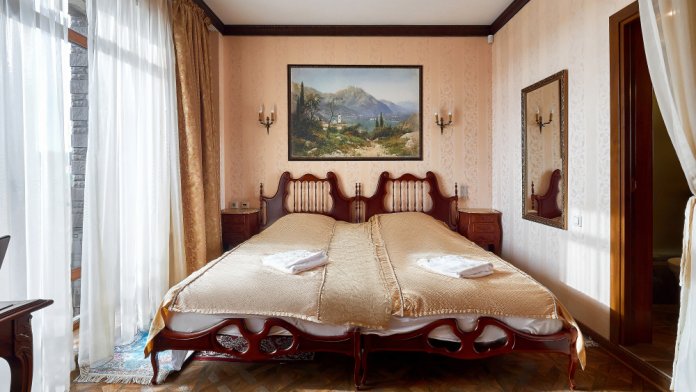 Номер с одной большой или с двумя раздельными кроватями.