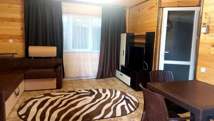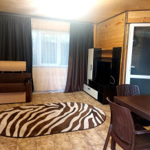 Однокомнатный номер с мини-кухней, рассчитан до 4 человек. В гостиной двухспальный раскладной диван, спальня с двухспальной кроватью перегорожена от гостиной нишей.