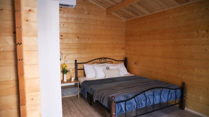 Для наших гостей мы предлагаем коттеджные домики, полностью оборудованные для комфортного проживания. Все домики оснащены кондиционером и телевизором с плоским экраном, смарт-тв, Wi-Fi. К услугам гостей шкаф для одежды и собственная ванная комната. Предоставляются полотенца и постельное белье. Есть фен, чайник, холодильник. У каждого домика есть своя веранда на которой расположены стол и стулья, для отдыха на свежем воздухе.