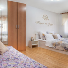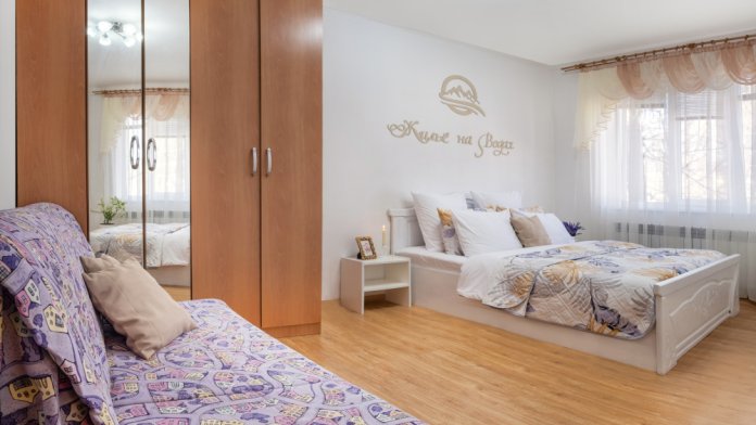 В квартире есть большая двуспальная кровать и раскладной диван, который может быть использован как дополнительное спальное место.