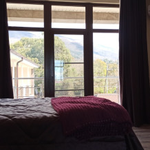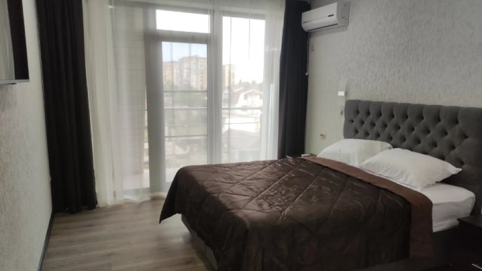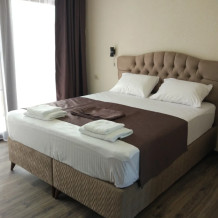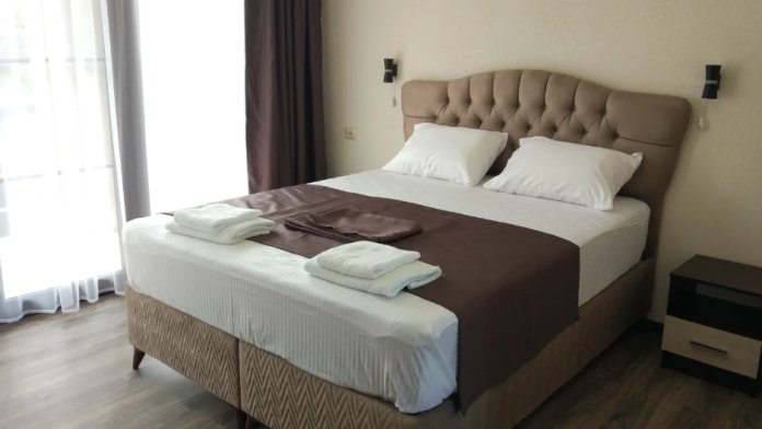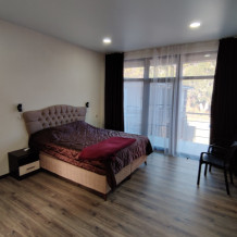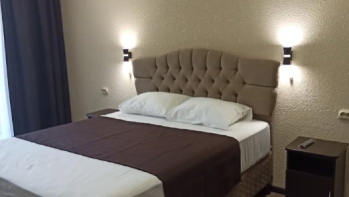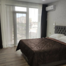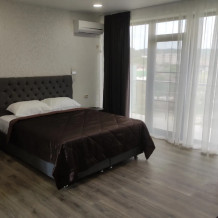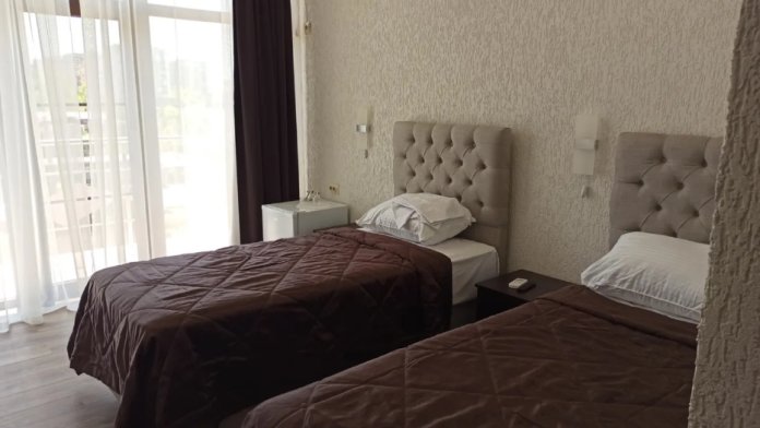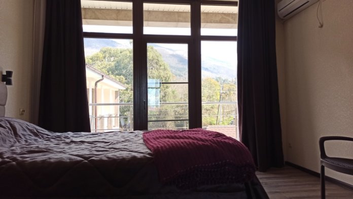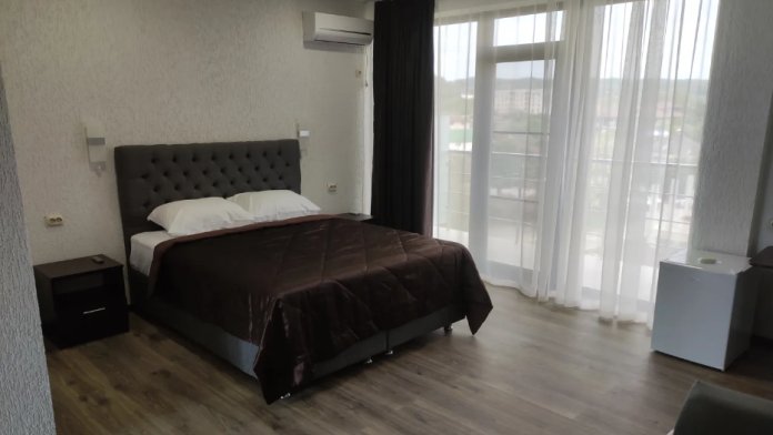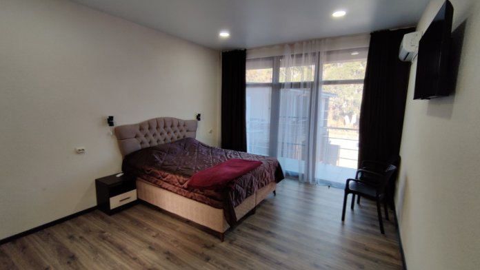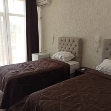 Номер 3-х местный с 2-х спальной кроватью и раскладным диваном, ванная комната, два балкона (один общий, второй в номере), кондиционер, телевизор, бесплатное постельное белье, полотенца, одноразовые тапочки, ФЕН, холодильник, Wi-Fi. Рядом с номером открытый солярий с видом на море, остеклённая веранда.