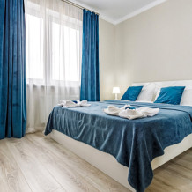Комфортное размещение от 1 до 4 гостей (удобная большая 2-спальная кровать и 2-спальный раскладной диван. Современная мебель, хлопковое постельное бельё, полотенца вся бытовая техника и посуда, мощная сплит-системы (тепло и холод), два ЖК-телевизора в каждой комнате и скоростной интернет Wi-Fi. Стиральная машина, холодильник, духовка, СВЧ-печь, чайник, гладильная доска, утюг, фен, посуда, столовые принадлежности.