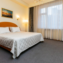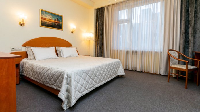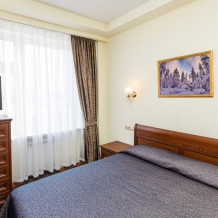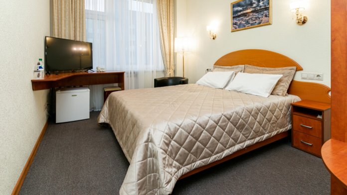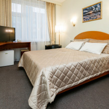 Однокомнатный номер повышенной комфортности категории площадью 27 кв.м с одной двуспальной кроватью King Size, а также рабочая зона с удобным письменным столом и телефоном. Данный номер идеально подходит для одноместного или двухместного размещения.