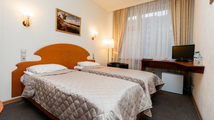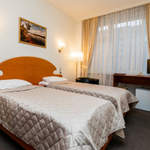 Светлый, уютный, однокомнатный номер площадью 17 кв.м с двумя раздельными кроватями. Дизайн выполнен в классическом стиле. Номер оснащён письменным столом и функциональной мебелью. Данный номер идеально подходит для одноместного или двухместного размещения.
