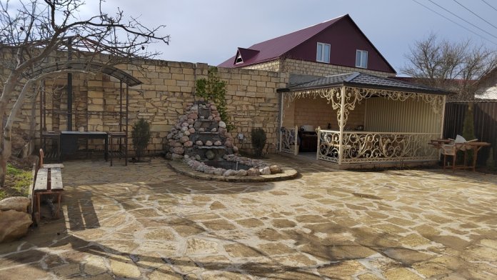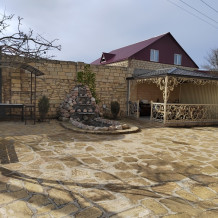 Во дворе беседка для отдыха с большим обеденным столом на 8-10 человек, бассейн и лежаки, гамак, мангал, казан, самовар. Закрытый двор для 2-3 машин с камерой видеонаблюдения.