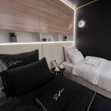 Вас ждут 4 уютных и комфортабельных номера, каждый из которых выполнен с любовью и вниманием к деталям. Здесь Вы найдете все необходимое для приятного отдыха: удобную мебель, современную технику и просторные ванные комнаты.