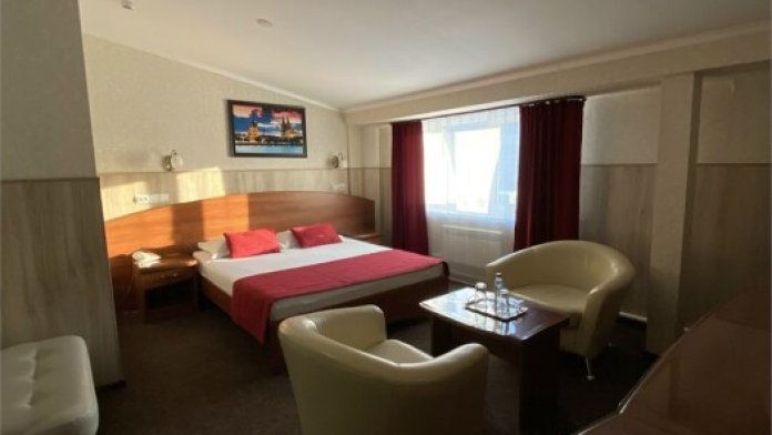 Однокомнатный просторный и комфортабельный номер, площадью 21 кв. м с видом на город. Завтрак включён в стоимость проживания. В номере имеется: 1 двуспальная кровать (140*200), сейф, диван, мини бар, шкаф, письменный стол, тумба, мини-прихожая, телевизор, телефон, гардероб, фен, холодильник, чайник, журнальный столик, ванная, халаты, санузел, кондиционер.