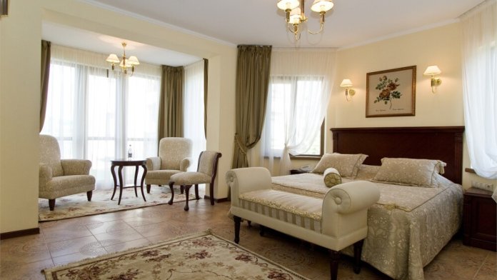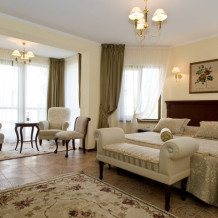 Номер «Люкс» состоит из двух раздельных комнат - гостиной и спальни, ванной комнаты и гостевого туалета.