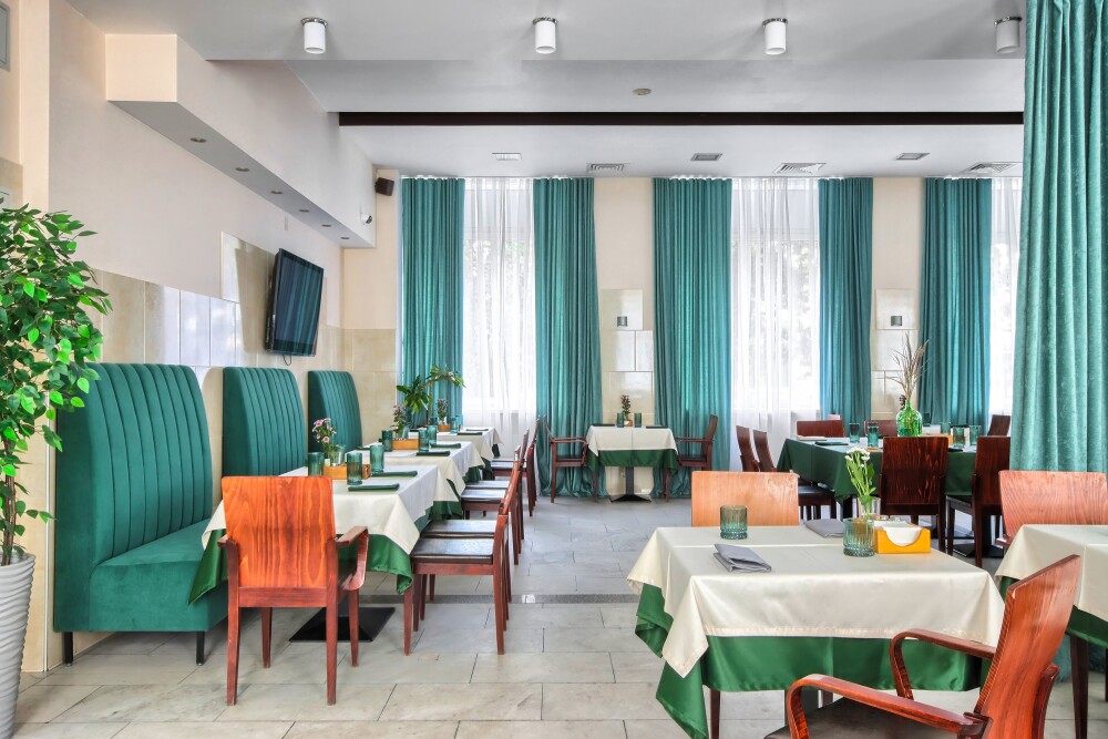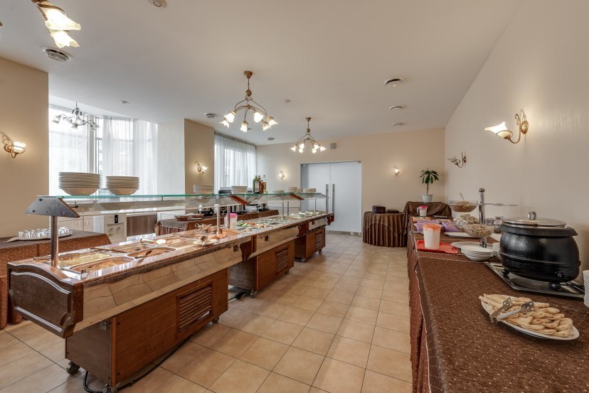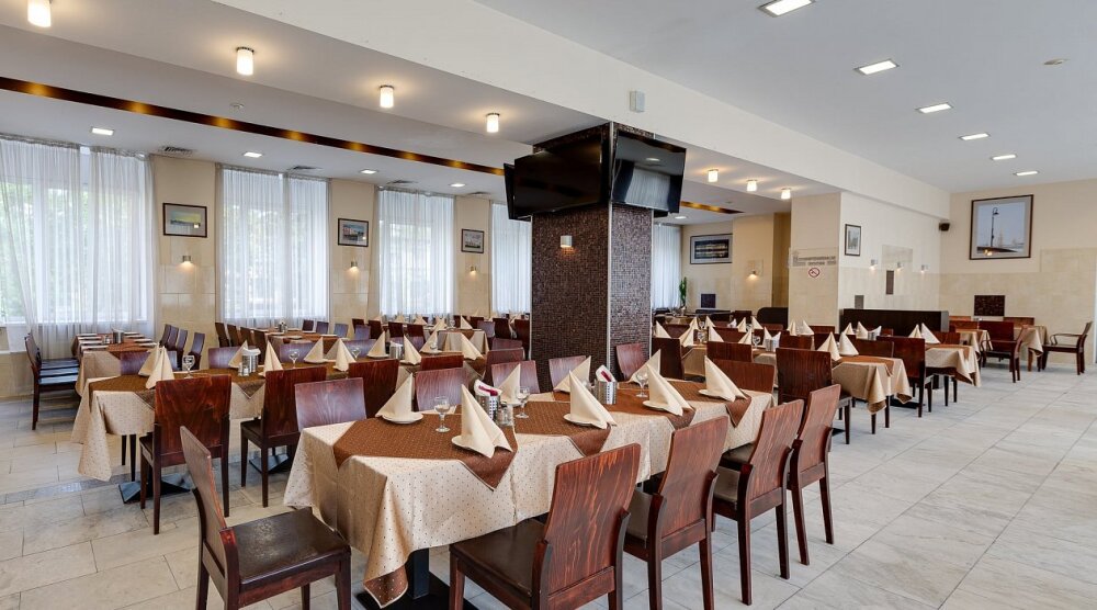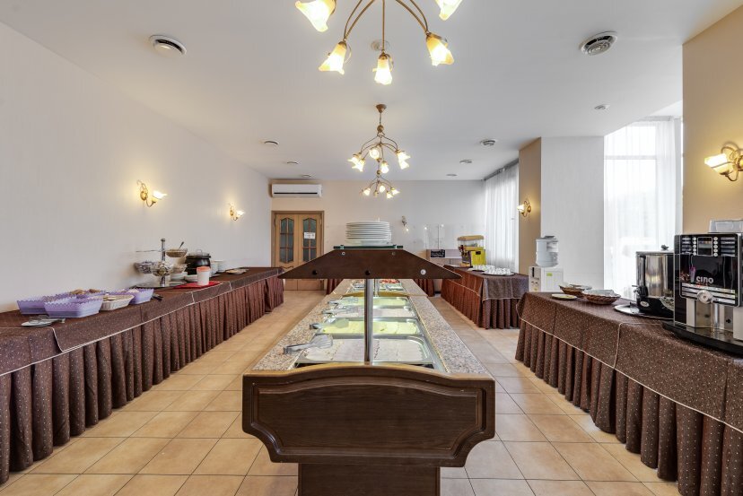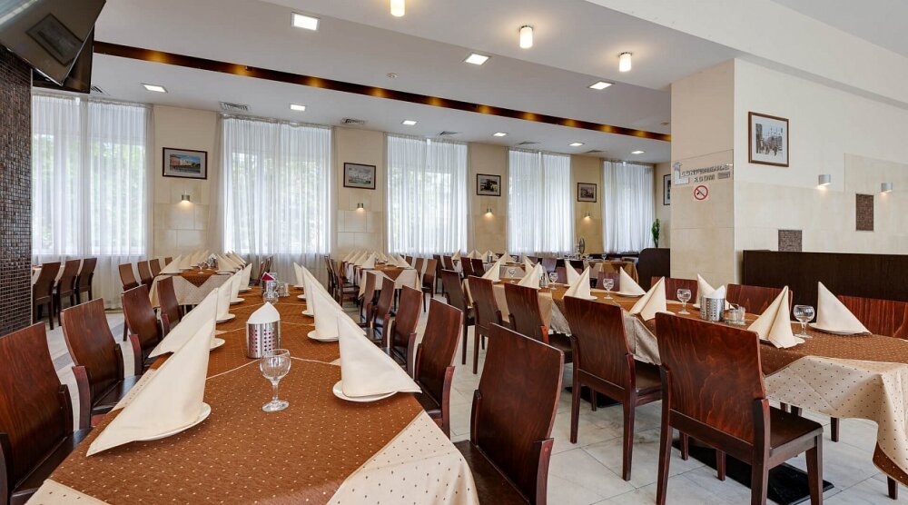 На территории отеля есть собственная большая парковка, бесплатная для гостей отеля, вместительный ресторан с русской и европейской кухней, сауна и салон красоты. Ресторан отеля с русской и европейской кухней предлагает организацию банкетов, фуршетов, ужинов и обедов, кофе-брейков. Ресторан отеля рассчитан на обслуживание до 100 человек единовременно.