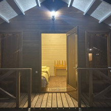 На территории комплекса располагается 9 стандартных коттеджей (4 спальных места) и 1 большой коттедж (5 мест), а также зона парковки и общая кухня. В домиках есть мягкая мебель, санузел, кондиционер, Wi-Fi, телевизор, холодильник, гардеробная и терраса для отдыха. Питание самостоятельное, для гостей представлена общая кухня со всеми необходимыми кухонными принадлежностями.
