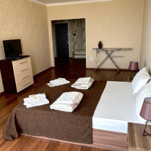 В квартире имеется необходимая посуда и столовые приборы, гладильная доска и сушилка.