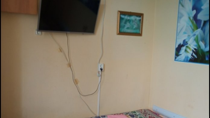 В номере есть телевизор, холодильник, кондиционер, кровать односпальная 2 шт., вешалка, комод, столик, стулья, тумбочка, зеркало. Душ, умывальник и туалет в номере. В номере есть необходимый набор санитарной гигиены; тазик для стирки. Комплект белья и полотенец. На этаже - гладильная доска с утюгом, чайник. Место для сушки белья. Смена постельного белья ( раз в неделю) и полотенец (раз в 3 дня) . Уборка номера раз в 7 дней.