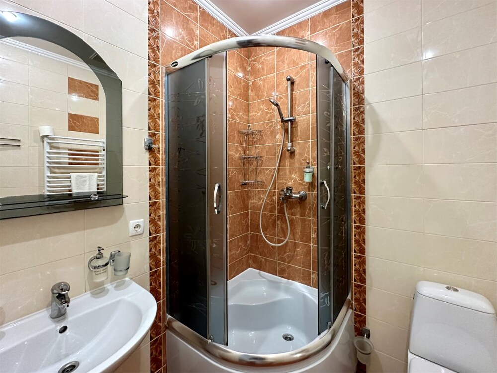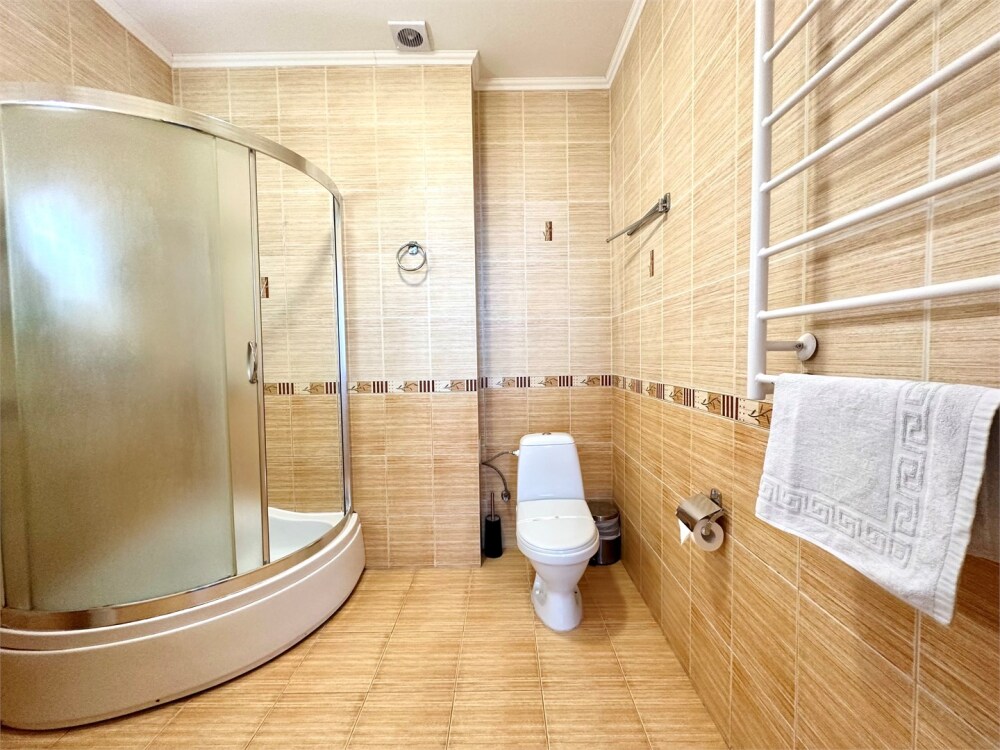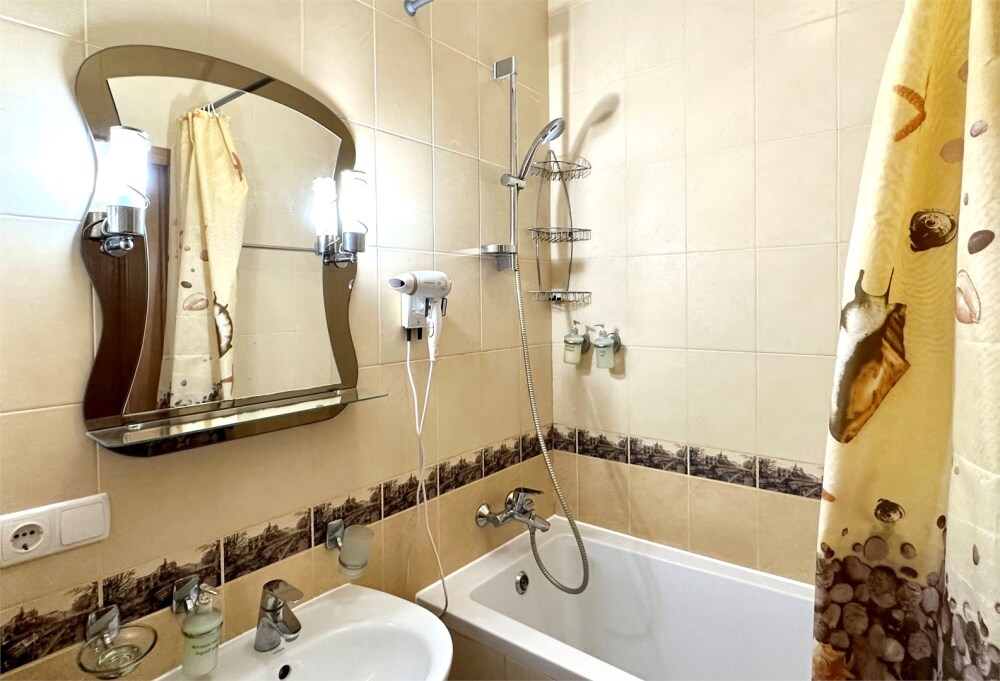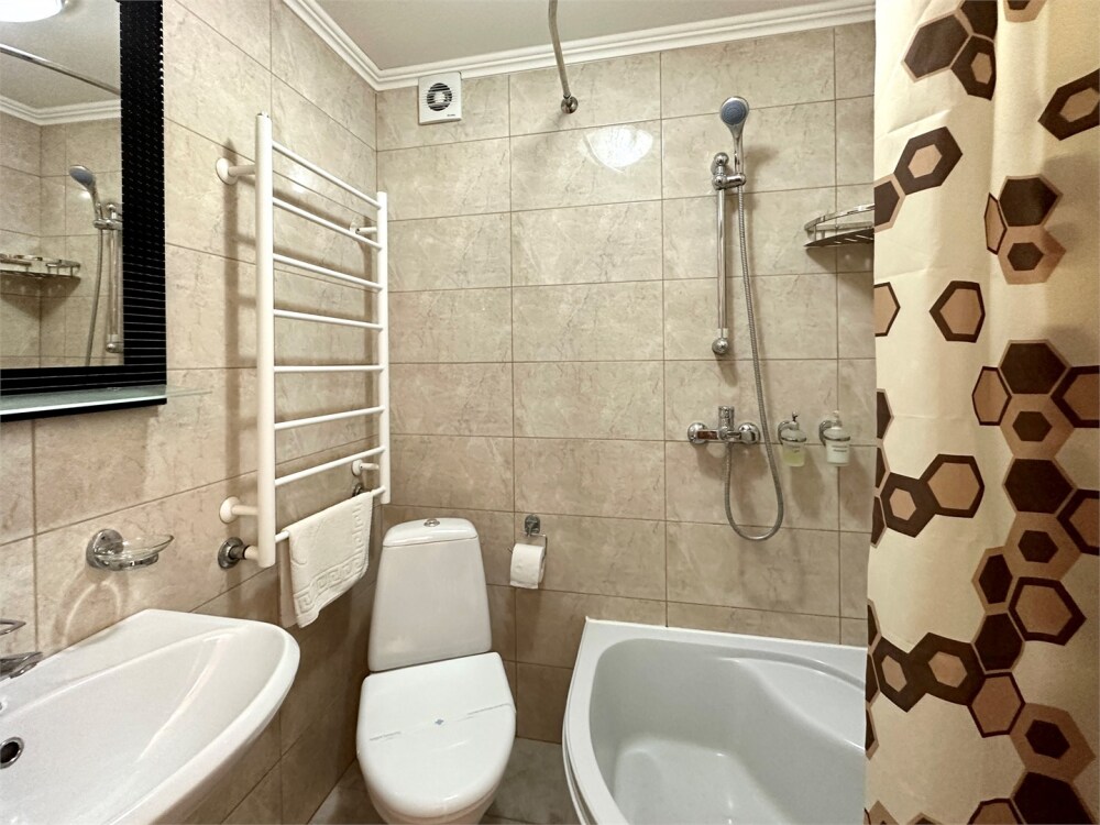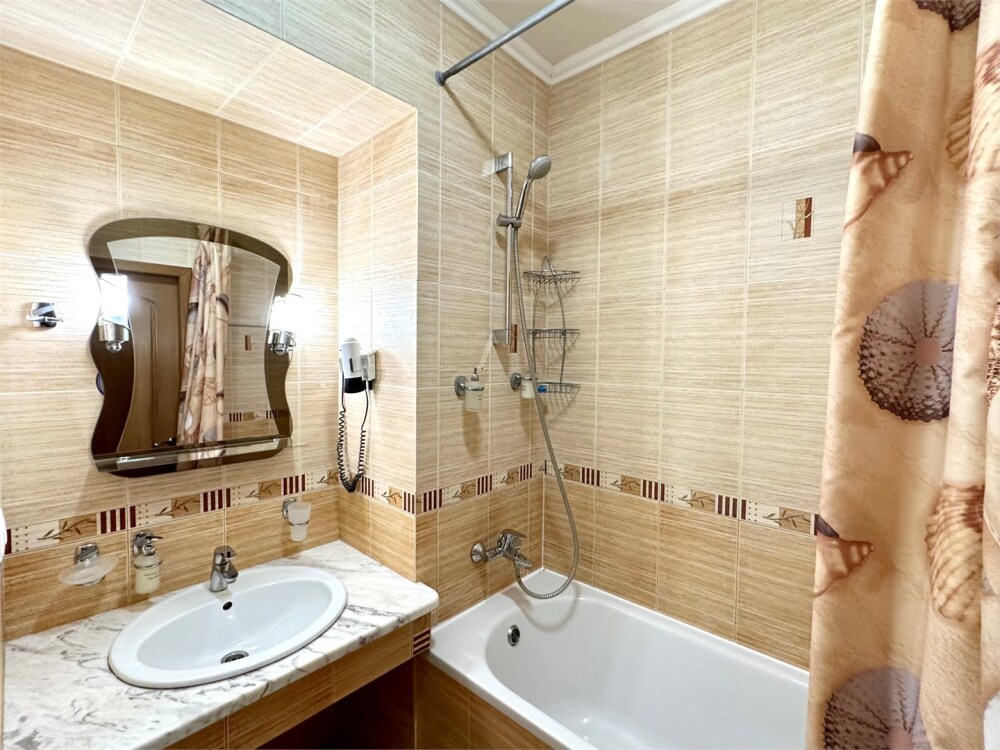 Комплектация номера: плоский телевизор, холодильник, кондиционер, фен, тапочки, халат, полотенца (банные и пляжные), жидкое мыло, гель д/душа, туалетная бумага, освежитель воздуха.