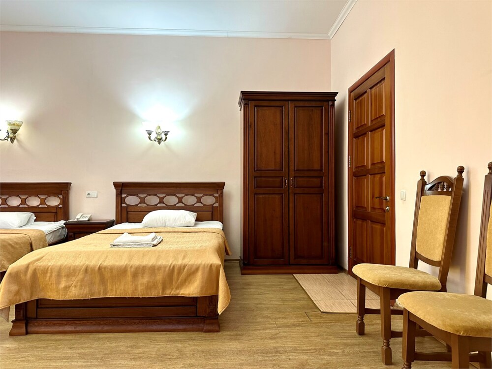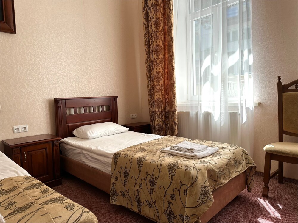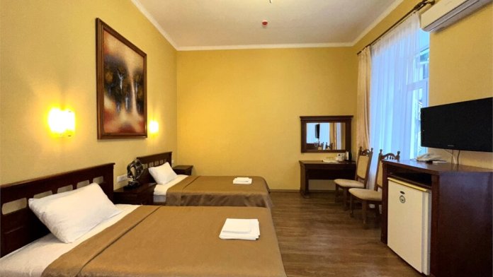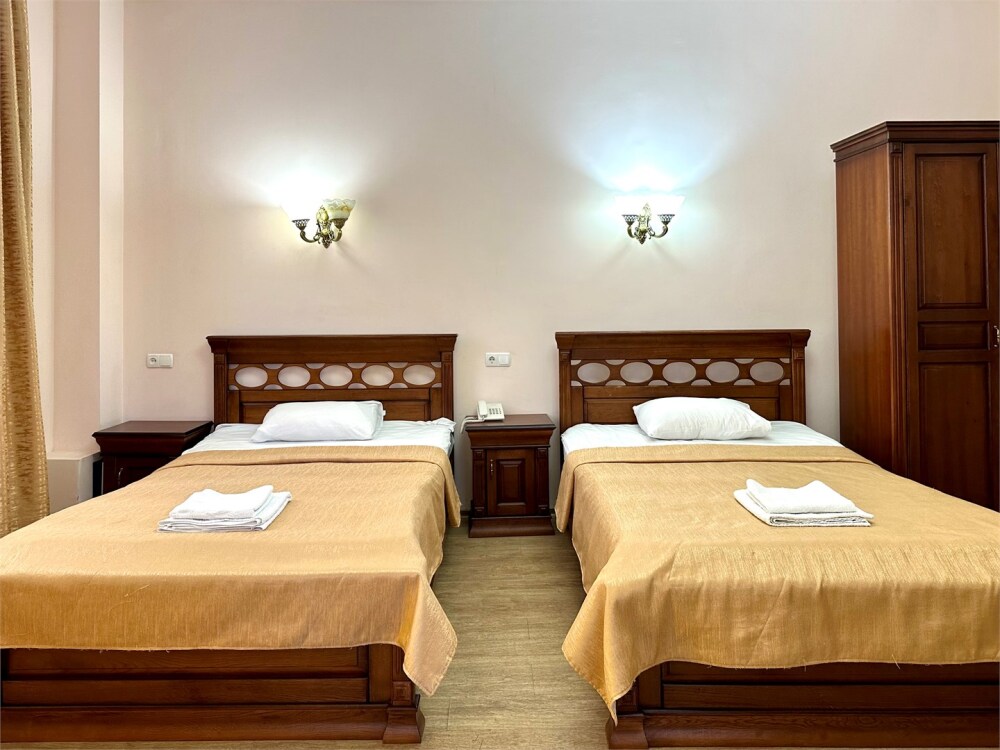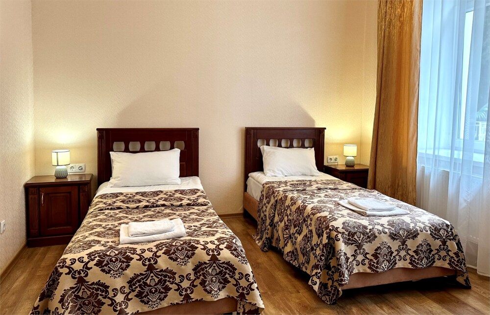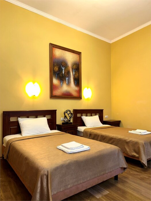 Уютные номера, с двумя односпальными кроватями. Номера оформлены в современном стиле с выходом на внутренний двор отеля.
