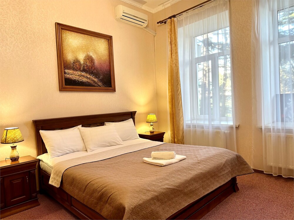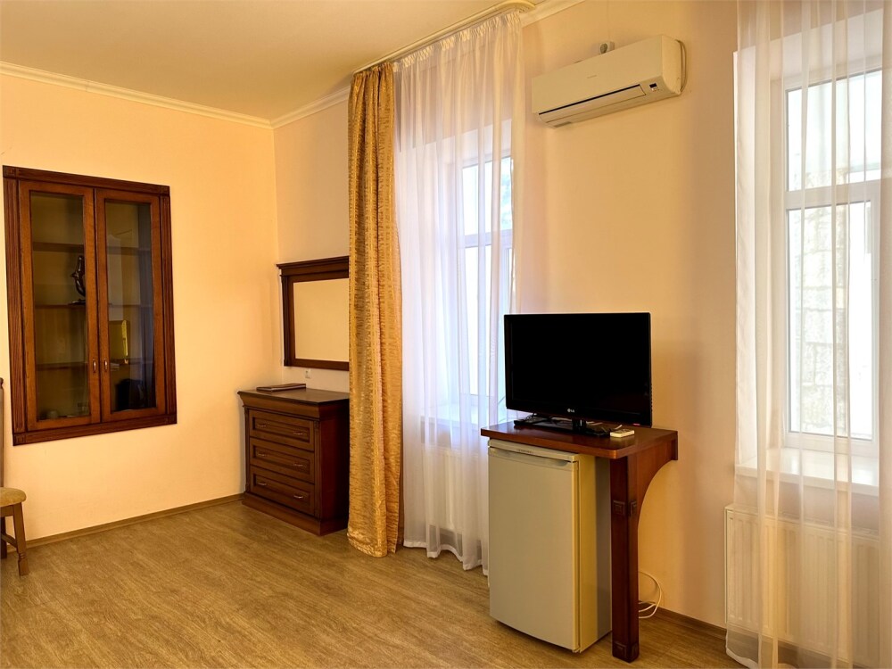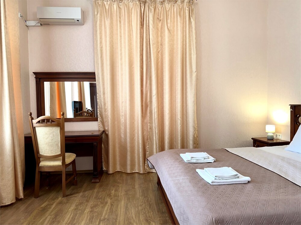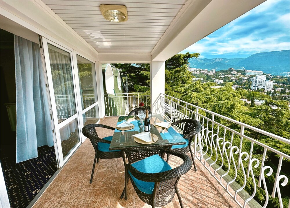 Отель обладает собственной закрытой территорией, где обеспечена круглосуточная охрана. Гостей встретит уютная домашняя атмосфера в сочетании с высоким уровнем сервиса. Отель включает пять типов номеров: стандарт, комфорт, бизнес, люкс, премиум люкс. 44 номера различных категорий, просторные и светлые номера оформлены в современном стиле, оснащены всем необходимым для комфортного проживания: кондиционер, холодильник, телевизор, фен и круглосуточный Wi-Fi. Из окон номеров открывается красивый вид на Черное море и Ялтинские горы. Наша гордость – вид с террасы и окон номеров нашего отеля. Это – потрясающие пейзажи Крымских гор и морского побережья, панорамный вид вызывающий восторг даже у самых искушенных гостей Ялты.