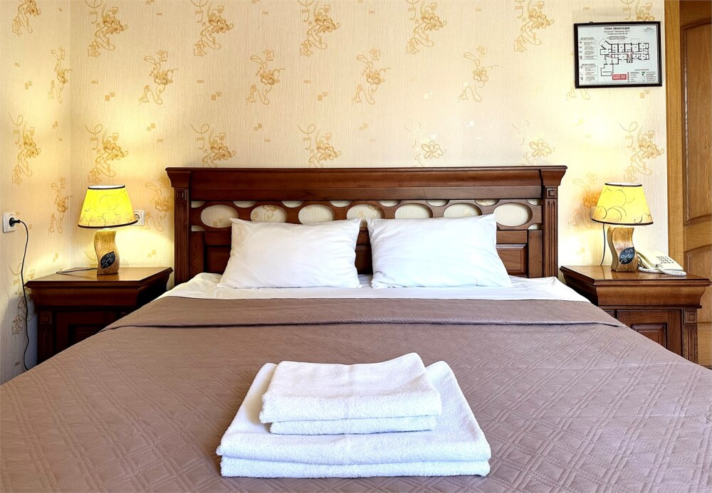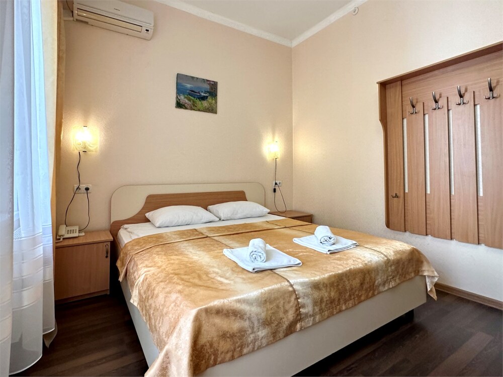 Уютные номера, с двуспальной кроватью. Номера выполнены в современном стиле.