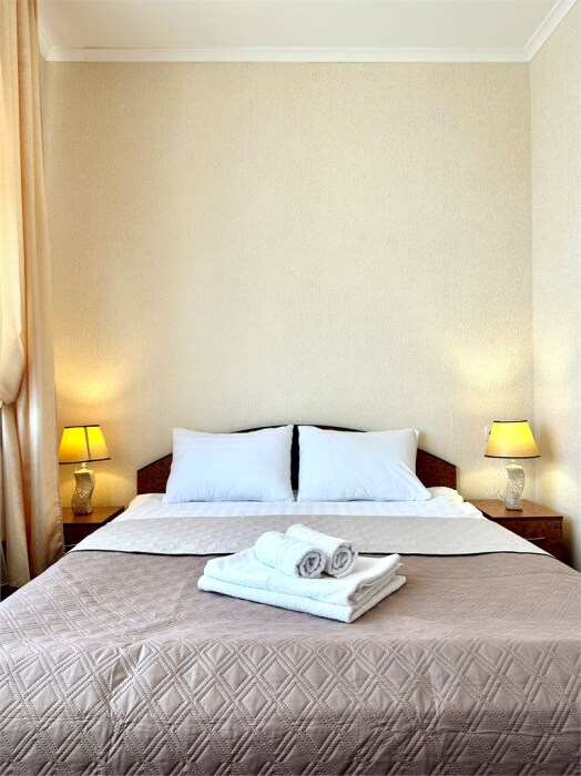 1-комнатные и 2-х комнатные 2-х местные просторные номера с одной двуспальной кроватью, оформленные в современном стиле.