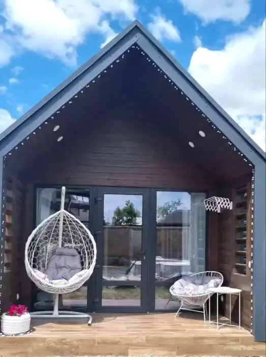 Домики «Я, ты и море» - стильные и уютные одноэтажные барнхаусы в минималистичном стиле с собственной террасой. Николаевка небольшой уютный поселок на берегу черноморского побережья крымского полуострова. Тихий уголок с хорошо развитым курортным сервисом, который отлично подходит для летних семейных каникул. Туристы хорошо отзываются о Николаевке и часто выбирают ее в качестве места проведения отпуска. Поселок имеет хорошую транспортную доступность и удачное расположение. Находится между крупными городами Евпатория и Севастополь, в 30 минутах езды от Симферополя с железной дорогой и аэропортом. Располагает благоприятной климатической зоной, которая сочетает сухой степной и мягкий морской климат. Купаться здесь можно начинать уже в конце мая, а бархатный сезон продолжается на протяжении всего сентября. Воздух вокруг наполнен ароматами лечебных трав, а водные процедуры сочетаются с обилием зелени и фруктов.