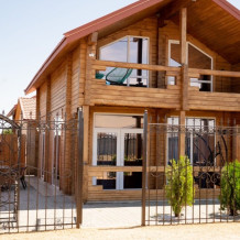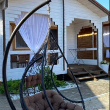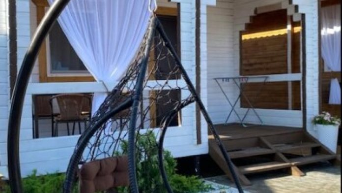 Уютные комфортабельные деревянные домики с собственной верандой, мангальная зона, детская площадка для самых маленьких гостей, большой батут, Wi-Fi, бесплатная парковка, видеонаблюдение по всей территории.