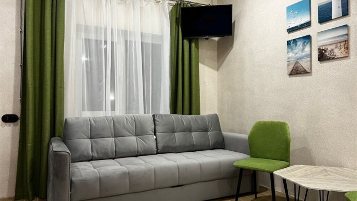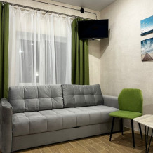 Номер с собственной ванной и с/у, индивидуальная веранда с обеденной зоной. Номер оснащен всем необходимым для комфортного отдыха: двуспальная кровать с ортопедическим матрацем, диван с полноценны спальным местом 160*200 на двоих, кондиционер, TV на андроид, холодильник, чайник, набор посуды, чай/сахар/вода, душевые принадлежности, фен. Шкаф, комод для вещей. Предоставляются полотенца, постельное, плед. Для наших маленьких гостей предоставляется детская кроватка. Доп. место в виде евро раскладушки.