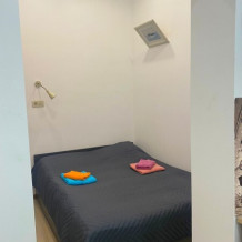 Двуспальная кровать 140-160см, шкаф, стол, стул, телевизор, чайник, микроволновка, холодильник, своя душевая и туалет.
