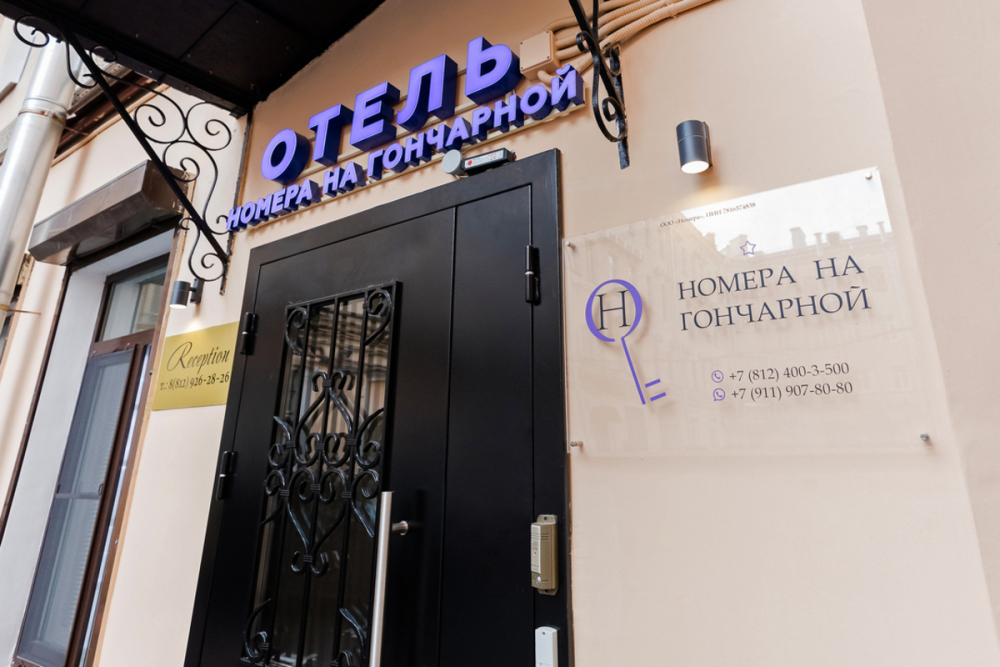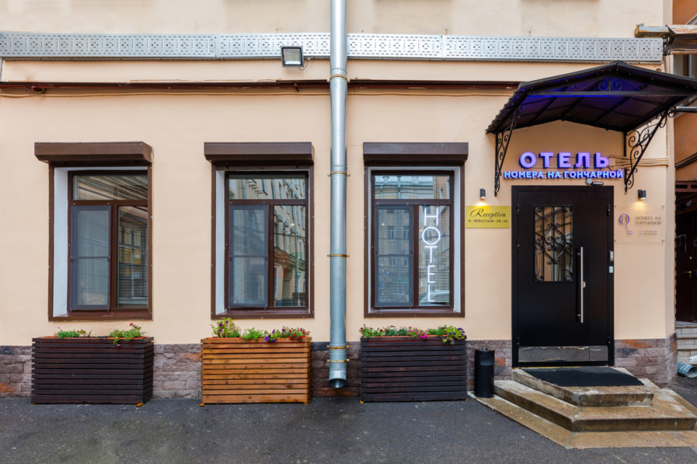 Отель «Номера на Гончарной» – это неповторимое сочетание качества сервиса, расположения и цены. Отель предлагает гостям 49 номеров различных категорий и расположен в самом сердце Санкт-Петербурга – у Московского вокзала. Всего 50 метрах от нашего отеля проходит главная артерия города – Невский проспект, на котором сконцентрированы все самые посещаемые достопримечательности, рестораны и развлекательные заведения города. Казанский собор, Спас на Крови, Дворцовая площадь и Государственный Эрмитаж – это лишь несколько из множества точек туристских маршрутов, проходящих сквозь Невский проспект. Расположение отеля в непосредственной близости от станции метро «Площадь Восстания» и главного железнодорожного вокзала Северной Столицы, будет значительным для деловых гостей города.