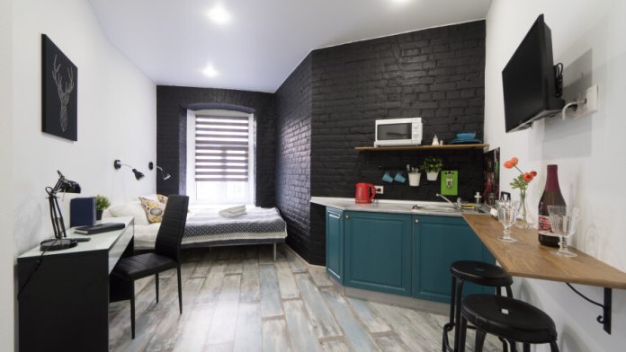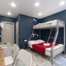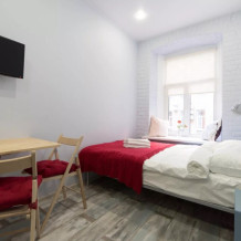 Студия идеально подойдет для тех, кто путешествует семьей или компанией из трех человек. К вашим удобствам гостиная зона, мини-кухня, где имеется все необходимое для приготовления еды, санузел. Размеры основного спального места 150 см * 180 см, на втором ярусе полноценная односпальное место 90*180 см.
