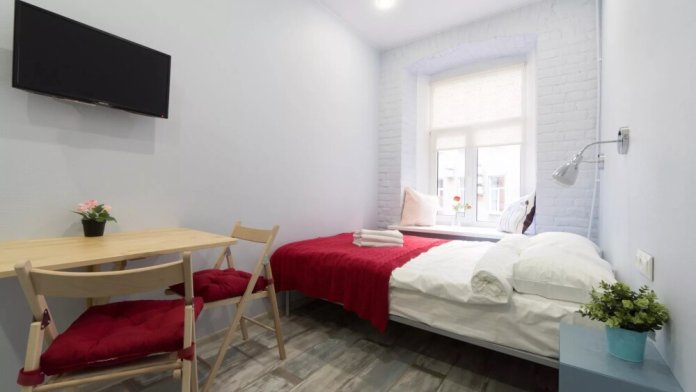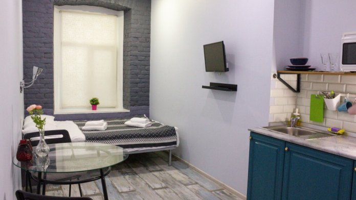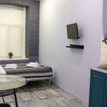 Уютные апартаменты с двуспальной кроватью, мини-кухней, ванной комнатой и тишиной классических Петербургских дворов.