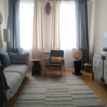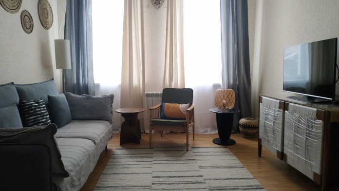Квартира укомплектована всей необходимой посудой и техникой, текстильными принадлежностями, комфортная кровать с ортопедическим матрацем, в жаркие дни можно воспользоваться напольным охладителем/увлажнителем воздуха, зимой тепло предоставит свое автономное отопление. После каждого гостя производится профессиональный клининг.