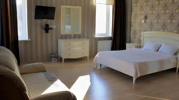 Во всех комнатах есть удобные спальные места (двуспальная кровать, двуспальный или полутораспальный диваны) и смарт-ТВ.