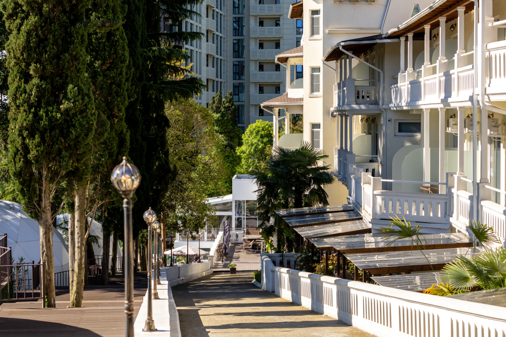 Отель «Рановский парк 4*» расположен в историческом здании виллы братьев Рановских в центральной части города-курорта Сочи в закрытой парковой зоне. В непосредственной близости от отеля находится парк Дендрарий, а дорога к пляжу пешком займет у вас не более 10 минут.