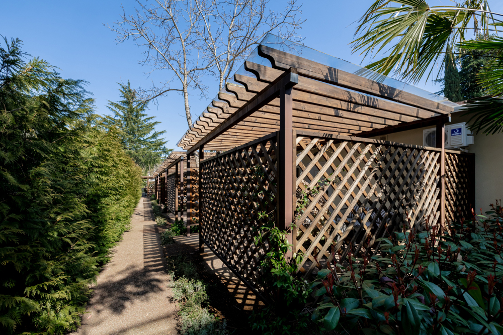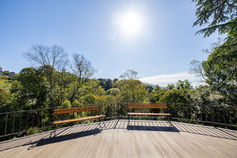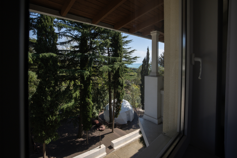 Под открытым небом на территории отеля круглогодично работает подогреваемый бассейн с джакузи. Также есть ресторан и закрытая парковая зона. С территории открывается великолепный вид на Дендрарий и море.