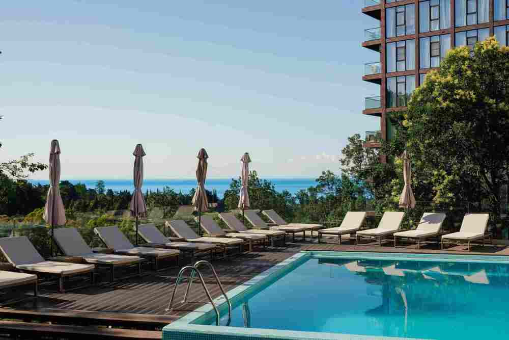 Помимо удобного расположения, изюминкой отеля является круглогодичный подогреваемый бассейн с джакузи из которого открывается прекрасный вид на море и парк Дендрарий. Бассейн оборудован детской зоной, в которой дети смогут комфортно и безопасно развлекаться в воде.