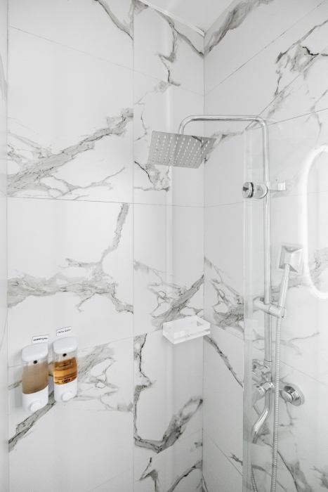 В комнате — кондиционер, чайник, мини-холодильник, сейф, шкаф, телевизор. Номер оборудован собственной ванной комнатой, где гостей ожидают базовые косметические средства, полотенца, и тапочки.