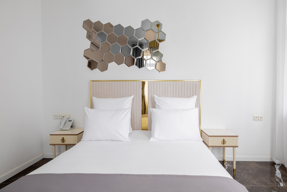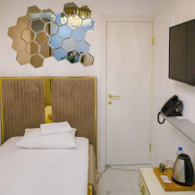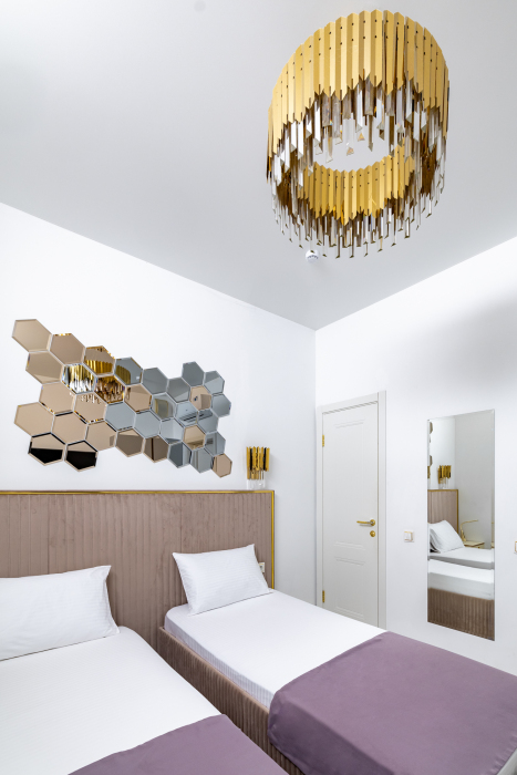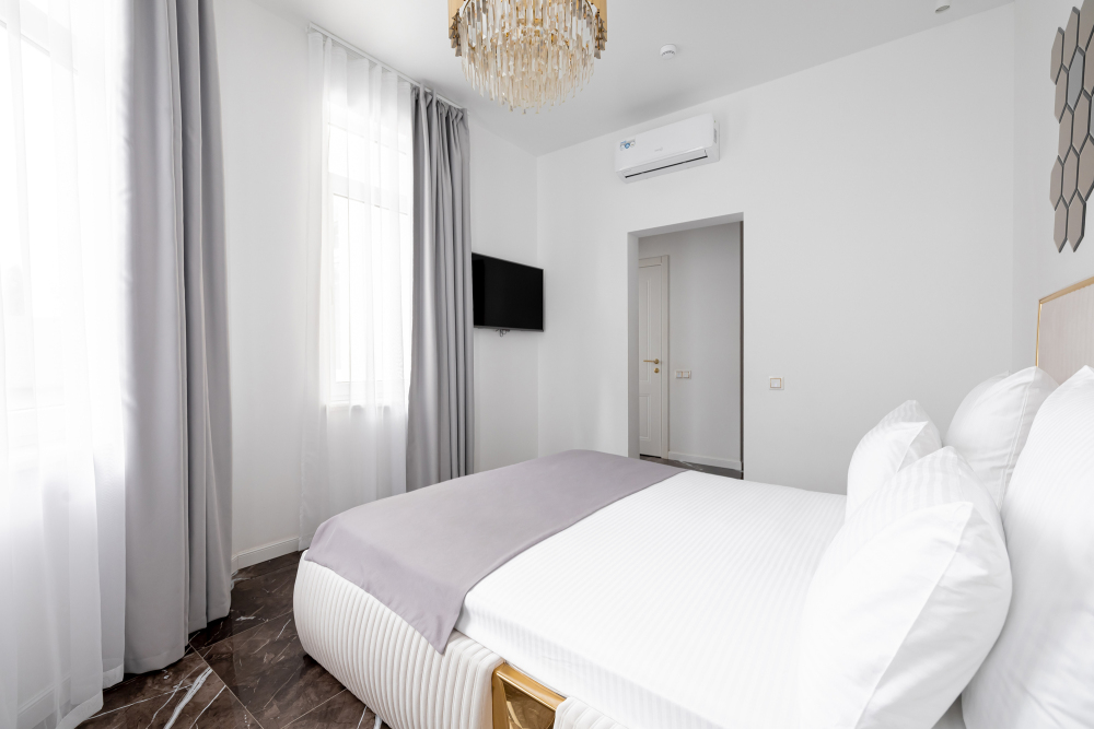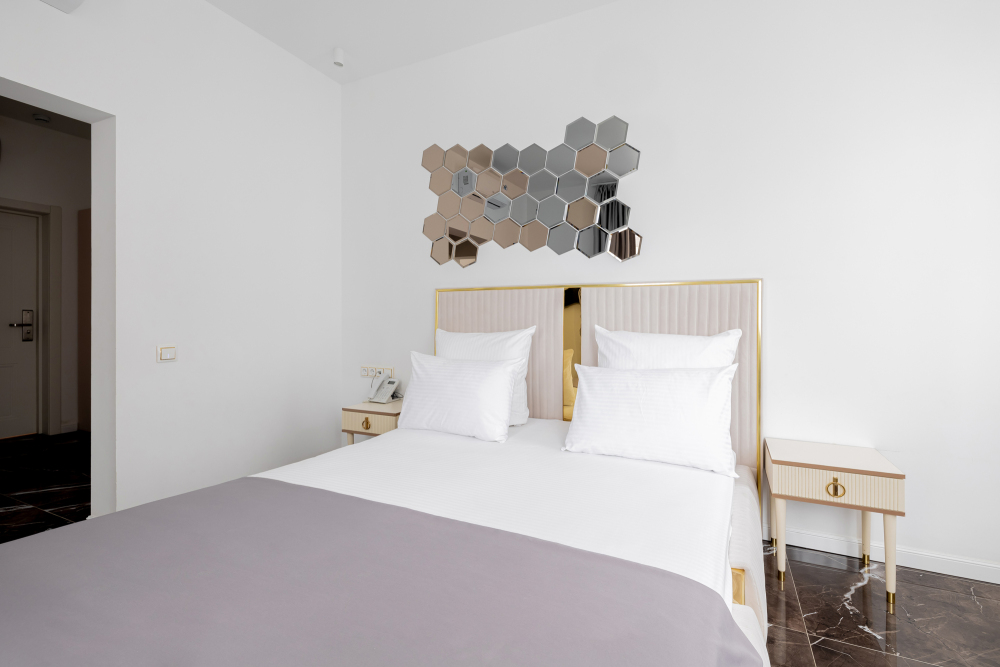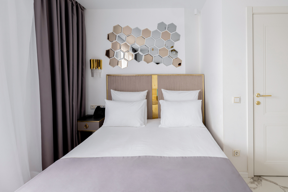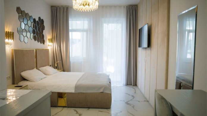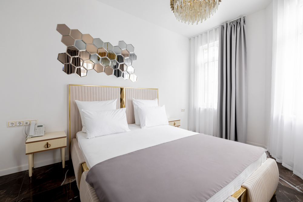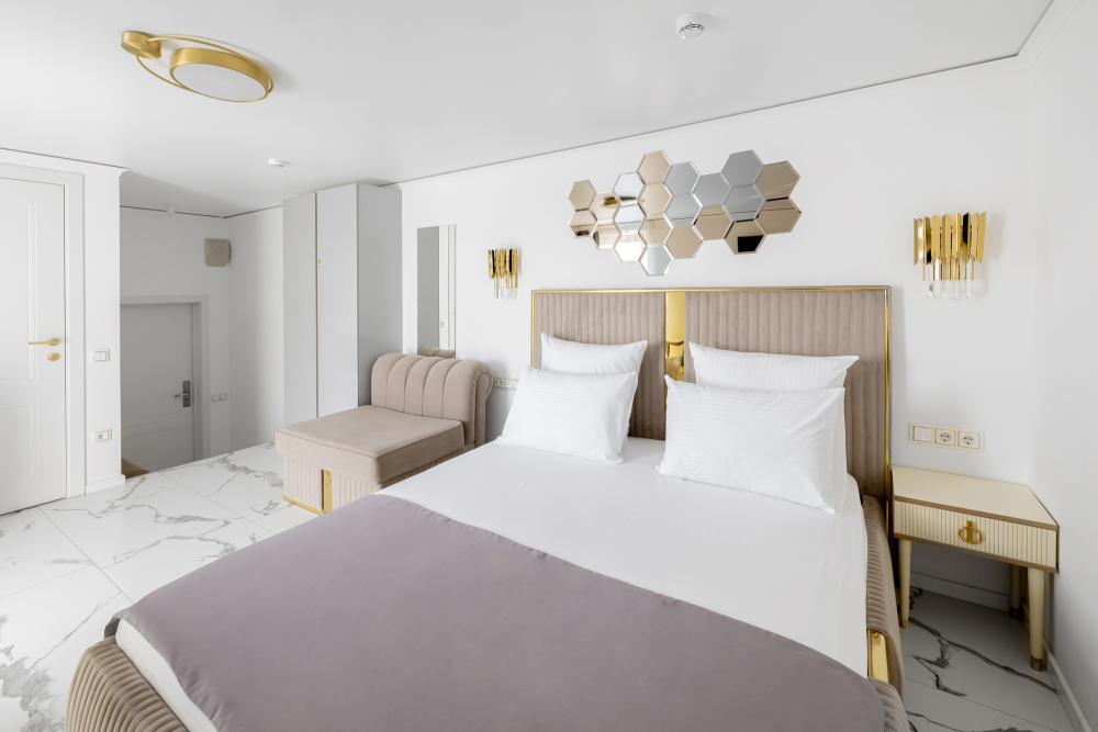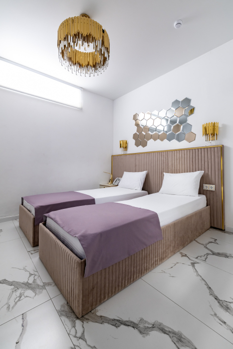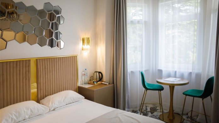 Все номера отеля с дизайнерским интерьером и оборудованы современными ТВ, сплит-системами, сейфами, холодильниками, шкафами для хранения одежды, сейфами и комфортными кроватями. В каждом номере индивидуальная ванная комната с душевой кабиной, набором полотенец, феном и полным набором гигиенических принадлежностей. Каждому гостю предоставляется завтрак на выбор из сет-меню.