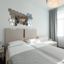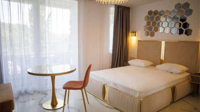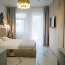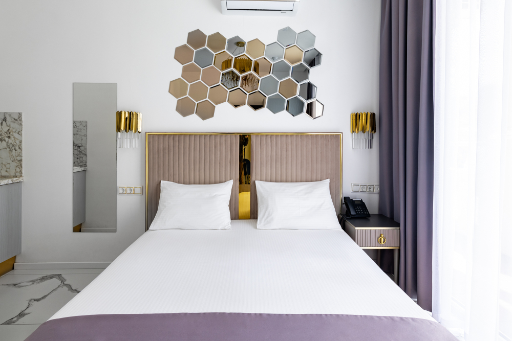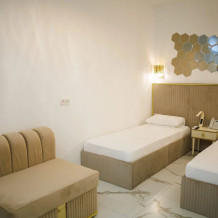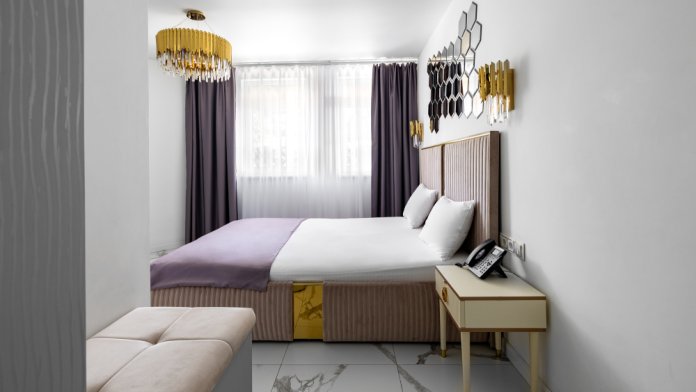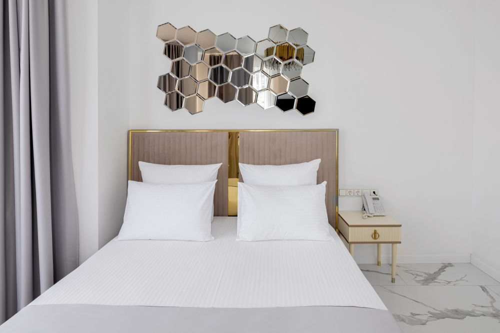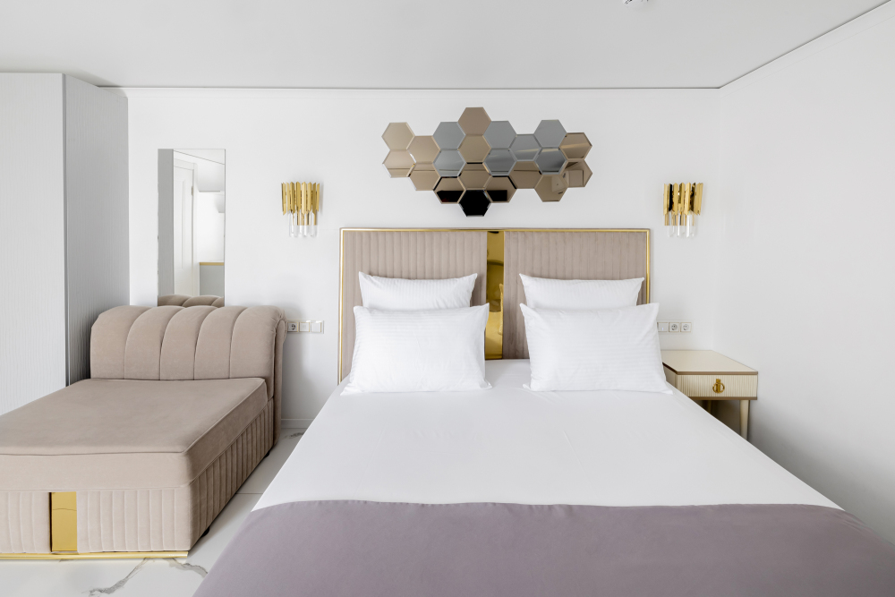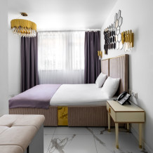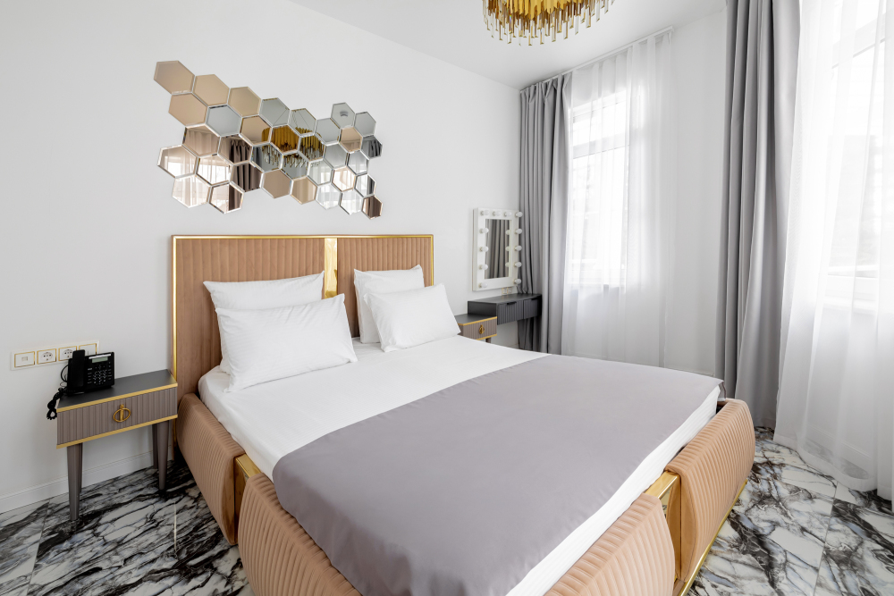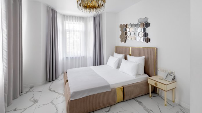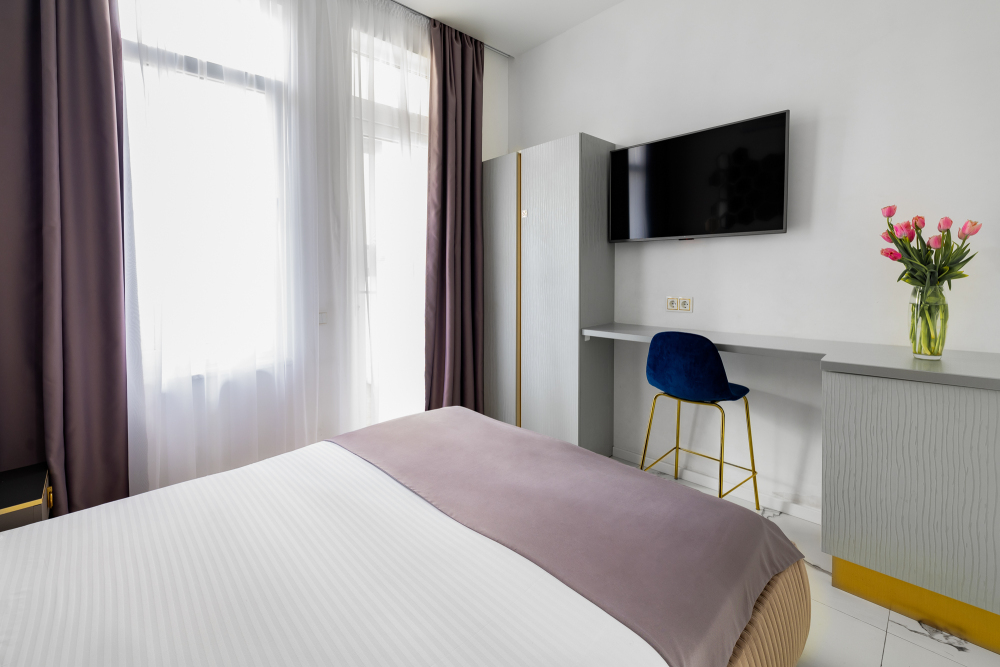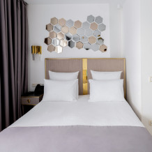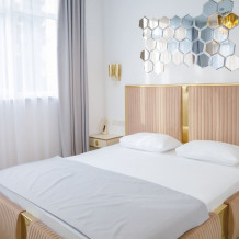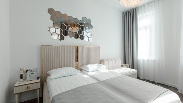 Все номера отеля с дизайнерским интерьером и оборудованы современными ТВ, сплит-системами, сейфами, холодильниками, шкафами для хранения одежды, сейфами и комфортными кроватями. В каждом номере индивидуальная ванная комната с душевой кабиной, набором полотенец, феном и полным набором гигиенических принадлежностей. Каждому гостю предоставляется завтрак на выбор из сет-меню.