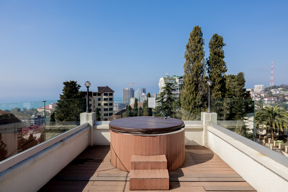 Под открытым небом на территории отеля круглогодично работает подогреваемый бассейн с джакузи. Также есть ресторан и закрытая парковая зона. С территории открывается великолепный вид на Дендрарий и море. Отель расположен в самом центре Сочи. До ближайшего пляжа — 10 минут пешком.