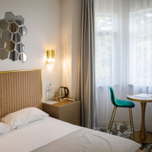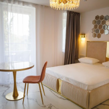 Комфортный однокомнатный номер с одной двуспальной кроватью раскладным креслом (в некоторых номерах раскладная кровать) и балконом или террасой.